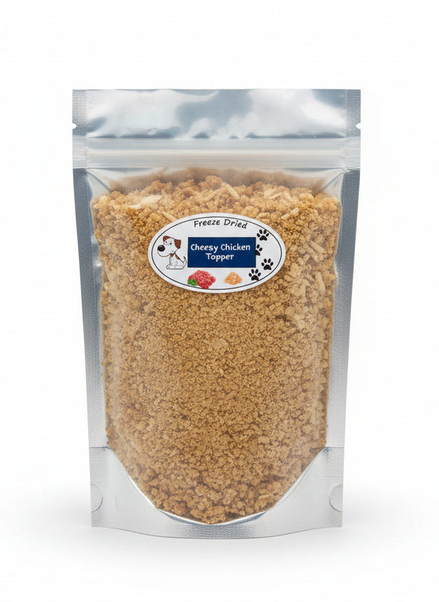 Freeze-dried raw chicken breast and cheese topper designed to boost your pet's nutrition. Mix into regular meals for added protein and enhanced taste. Ideal for pets on raw or whole-food diets.
