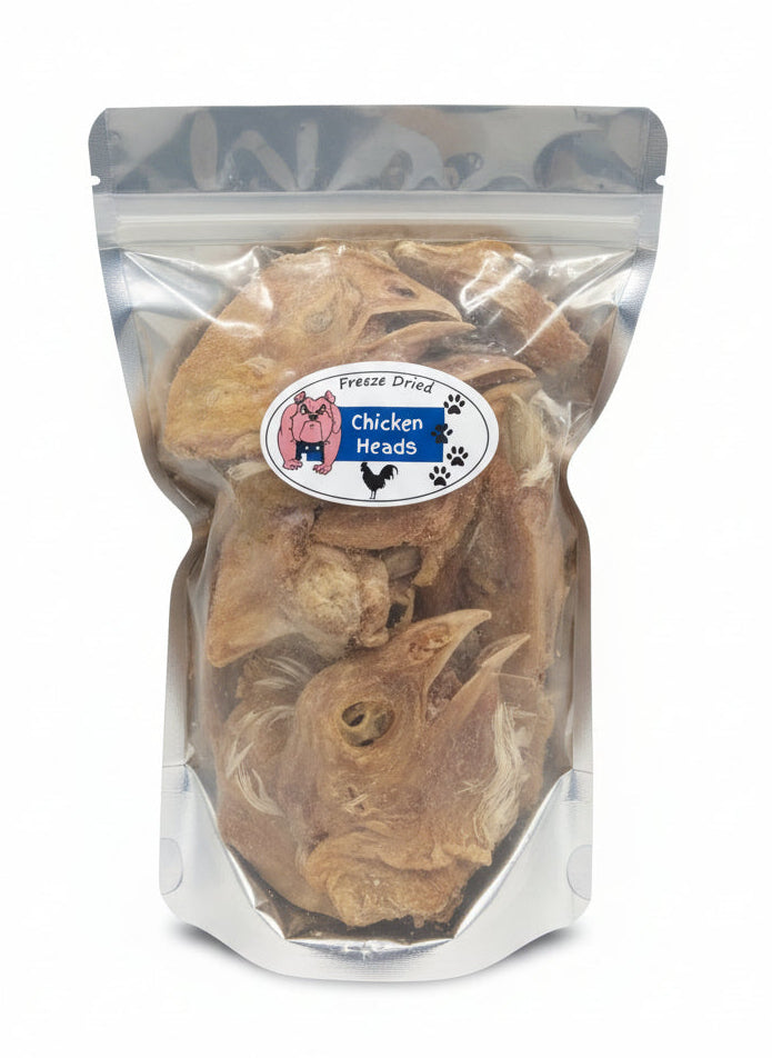 Freeze-dried chicken heads are a raw dog treat that delivers complete nutrition in whole-food form. The freeze-drying process preserves proteins, minerals, and nutrients while remaining shelf-stable without refrigeration. These treats support joint health, muscle development, and provide species-appropriate nutrition for larger dogs.