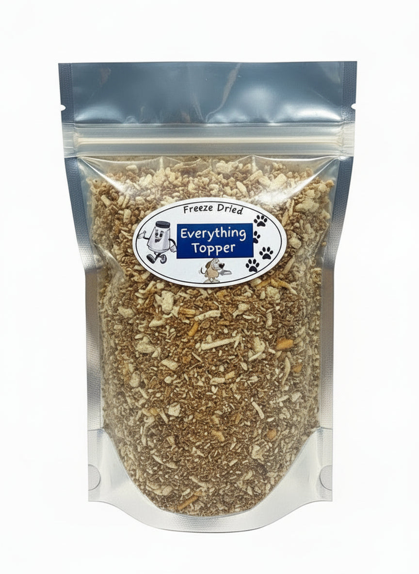 Our top-selling Everything Topper blends beef, chicken, pork, lamb, livers, cheeses, and pumpkin to deliver a nutrient-dense mix rich in protein, vitamins, and fiber. This flavorful combination promotes your pet’s overall health and digestive wellness while adding delicious appeal to their meals.